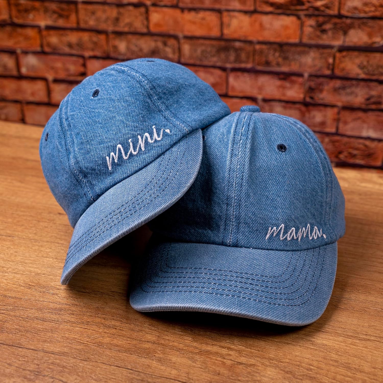 2PCS Matching Mama and Mini Hats for Mom and Girl 3-10 Years – Adjustable Embroidered Cotton Baseball Caps, Cute Mom and Daughter Hat Set, Idea Blue Denim