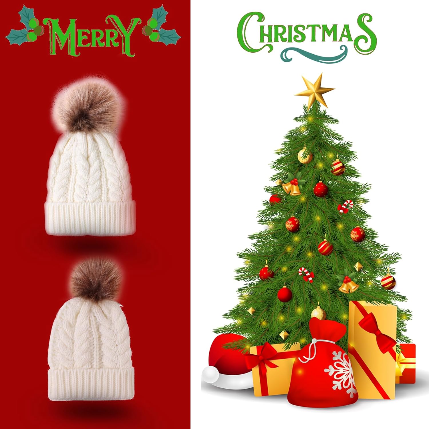 2PCS Parent-Child Hat, Mother & Baby Daughter/Son Winter Warm Knit Hat Family Crochet Beanie Cap with Pom Pom
