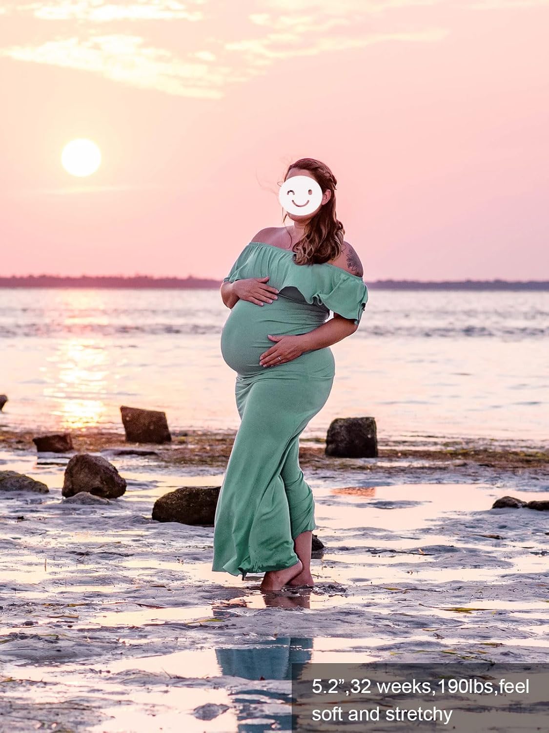 Glampunch Womens Off Shoulder Maternity Dress Ruffles Elegant Slim Gowns Fit Maxi Photography Dress