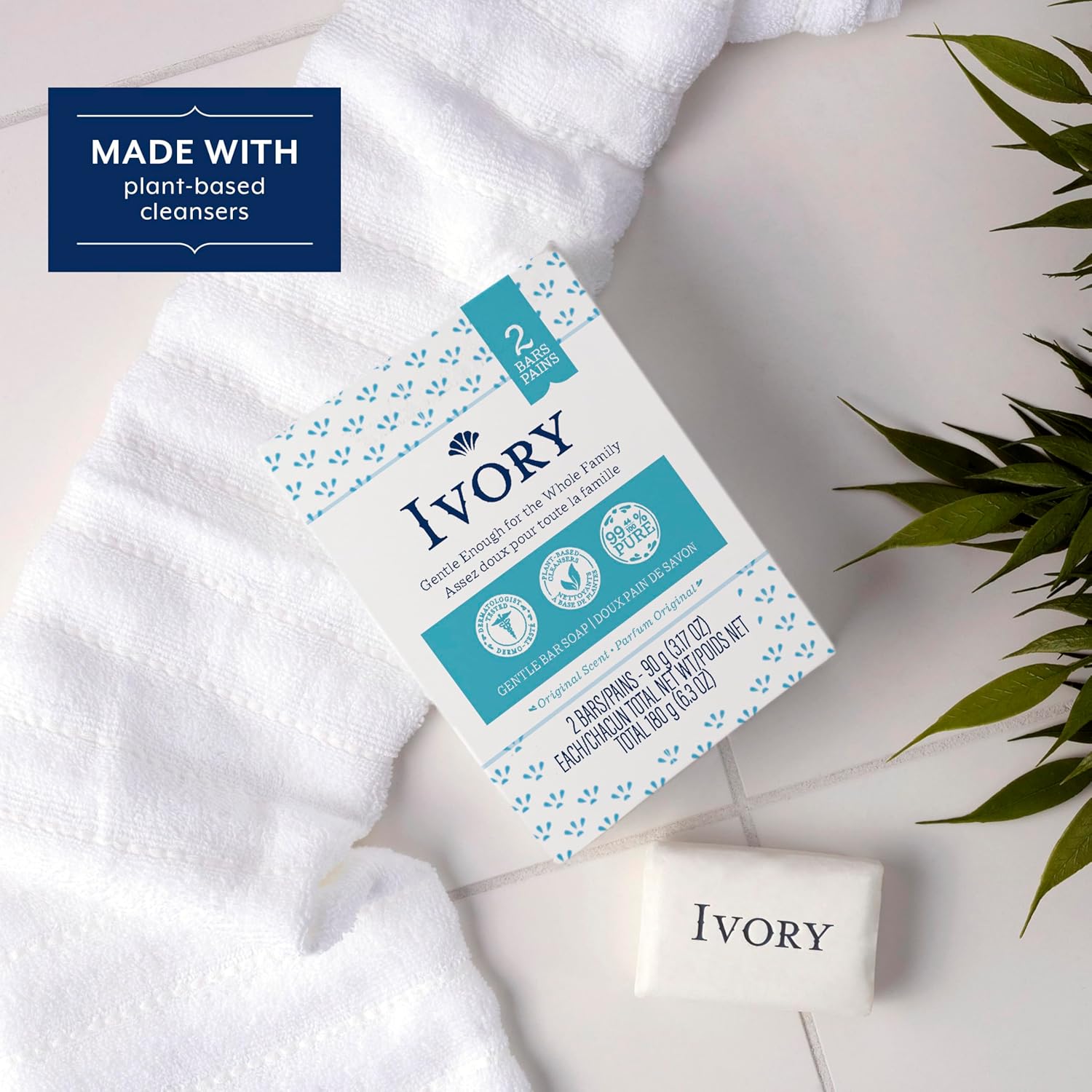 Ivory Gentle Bath Bar Soap, Designed for Whole Family, 99.44% Pure Formula with Plant-Based Cleansers, Made Without Heavy Perfumes, Parabens or Phthalates, Original Scent, 3.17 oz (2 Count)