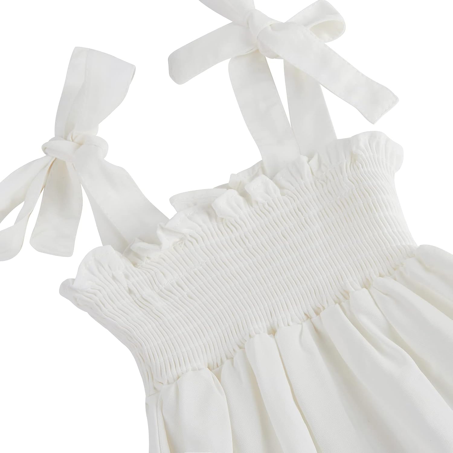 100% Rayon,soft,breathable and comfortable.All the details we love for this breezy sundress, from its stretch smocked bodice to its floral print. Plus, bows at the straps for the finishing touch.This breezy sundress is ready to be dressed up or down for any summer occasion.Adjustable strap romper/dress,can be adjusted higher or low depends on your needs.Hand wash or gentle machine wash.Hand to dry,dry with low heat,cool iron.PLEASE NOTE:Size 3-6 Months to Size 18-24 Months is Romper;Dresses are Sold Separately.There may be color differences between different batches of fabric.