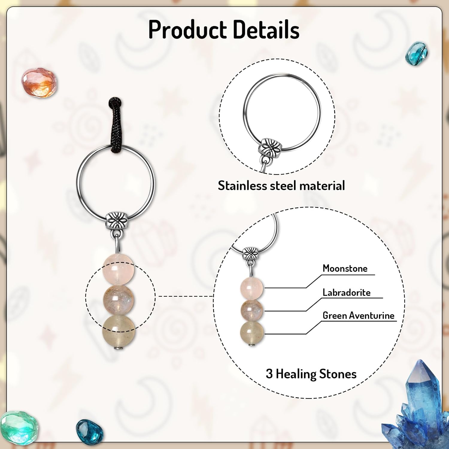 New Beginnings Gifts for Men Women Natural Crystals Healing Stones Anxiety Relief Keychain Backpack Purse Keychain