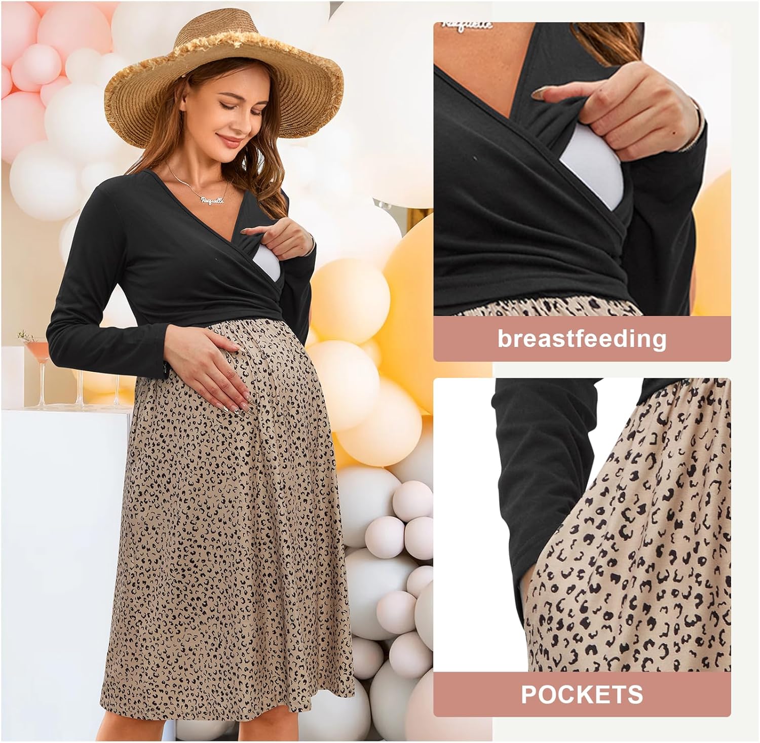 OUGES Womens 2025 V-Neck Maternity Dresses Nursing Breastfeeding Baby Shower Dress