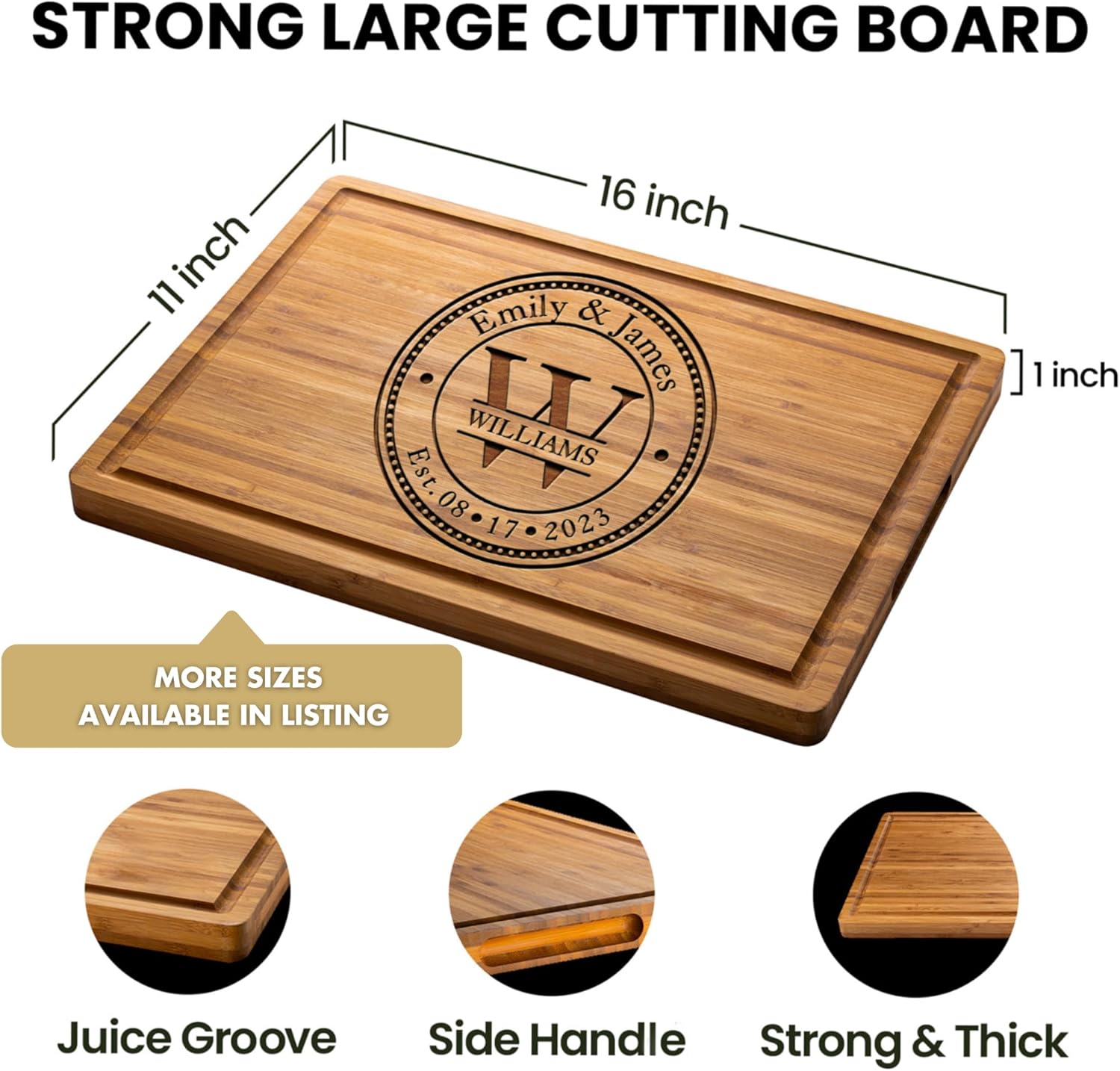 Quality Craftsmanship: The Hand-Crafted Custom Cutting Board is made with Smooth natural Bamboo & a Strong & Sturdy build you can rely on. Handmade in the Usa!
