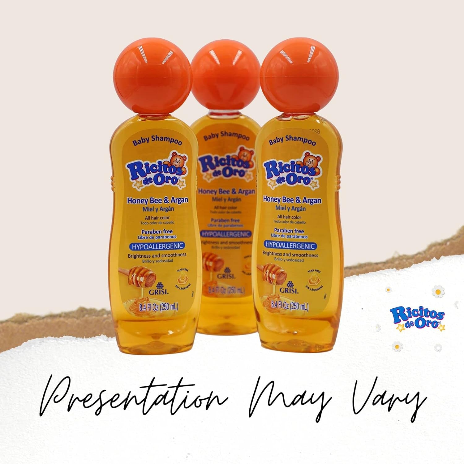 Ricitos de Oro Honey Bee Shampoo Baby Cleansing Shampoo Rattle Cap ParabenFree Product for Baby’s Delicate Hair Hypoallergenic 3-Pack of 8.4 FL Oz Each, 3 Bottles